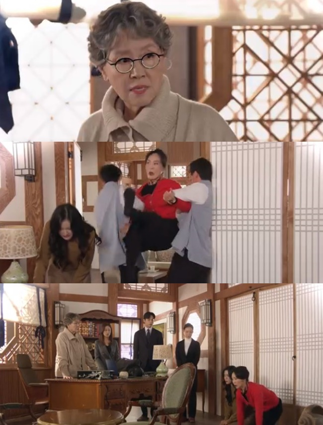 공개된 영상에서 윤보배(반효정 분)는 "당장 잡아들여라. 내가 그렇게 호락호락한 사람으로 보였냐. 양 집사(정새별 분) 저거 내쫒아라"며 강세란과 천애자(최지연 분)에 호통쳤다. 이어 윤보배가 "다신 내 눈앞에 나타나지 마라"며 무릎 꿇은 강세란과 천애자를 내쫓는 모습이 담겨 사이다 전개가 펼쳐질 거란 기대를 높였다.