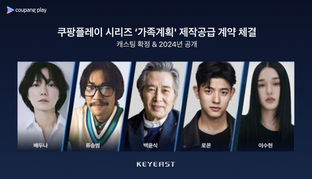키이스트는 10일 "쿠팡㈜·쿠팡플레이 시리즈 '가족계획' 제작 계약을 체결하고, 작년 12월 말 크랭크인해 촬영에 돌입했다"고 밝혔다.