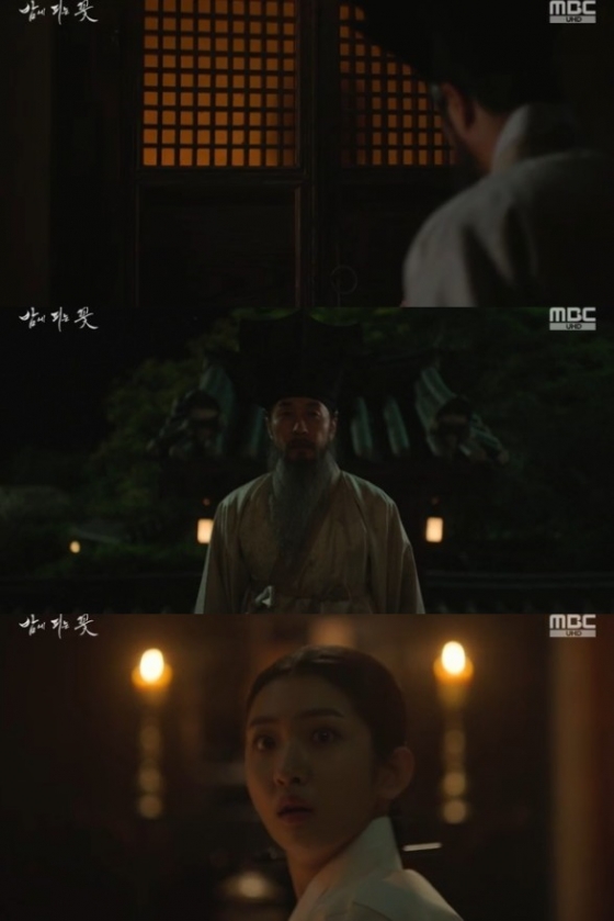 이후 조여화는 집으로 들어가던 중 시아버지인 석지성(김상중 분)이 사당으로 향하는 모습을 목격했다. 이에 조여화는 부리나케 사당으로 달려가 정숙한 과부의 모습으로 돌아가기 위해 급하게 환복을 시도했지만, 마지막으로 신발을 벗으려던 찰나 문이 열려 긴장감을 높였다.