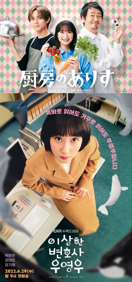 일본 NTV 드라마 '주방의 아리스', ENA 드라마 '이상한 변호사 우영우'./사진=NTV(사진 위), ENA
