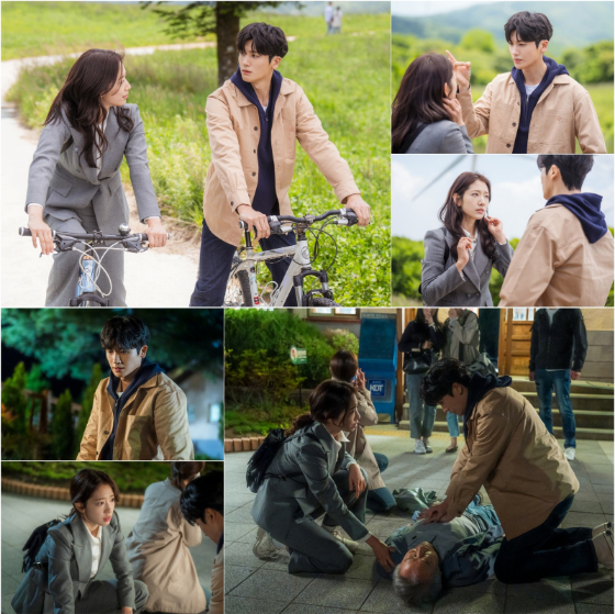 그런 가운데 공개된 사진 속, 여정우와 남하늘이 서울행 기차 대신 가까운 여행지로 걸음을 옮겼다. 누구보다 '쉼'이 필요했던 남하늘을 위해 준비라도 한 듯, 뜻밖에도 여정우와 둘이서 '힐링 여행(?)'을 하게 된 것. 탁 트인 풍경과 어우러져 자전거를 타는 두 사람의 모습에 이어, 딱밤을 때리려다 망설이는 여정우와 어색한 반응을 살피는 남하늘의 분위기가 괜히 묘하다. '티격태격' 친한 친구 같다가도, '두근두근' 썸(?)을 의심케 하는 여정우와 남하늘의 진심은 무엇일까.