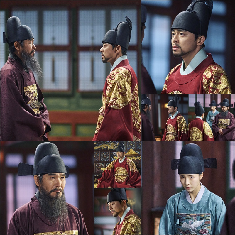 공개된 스틸 속 임금 이인은 '장령공주 바꿔치기 사건'을 역모로 간주해 고변하겠다고 나선 박종환에 대응하기 위해 강몽우와 삼자대면하고 있다.