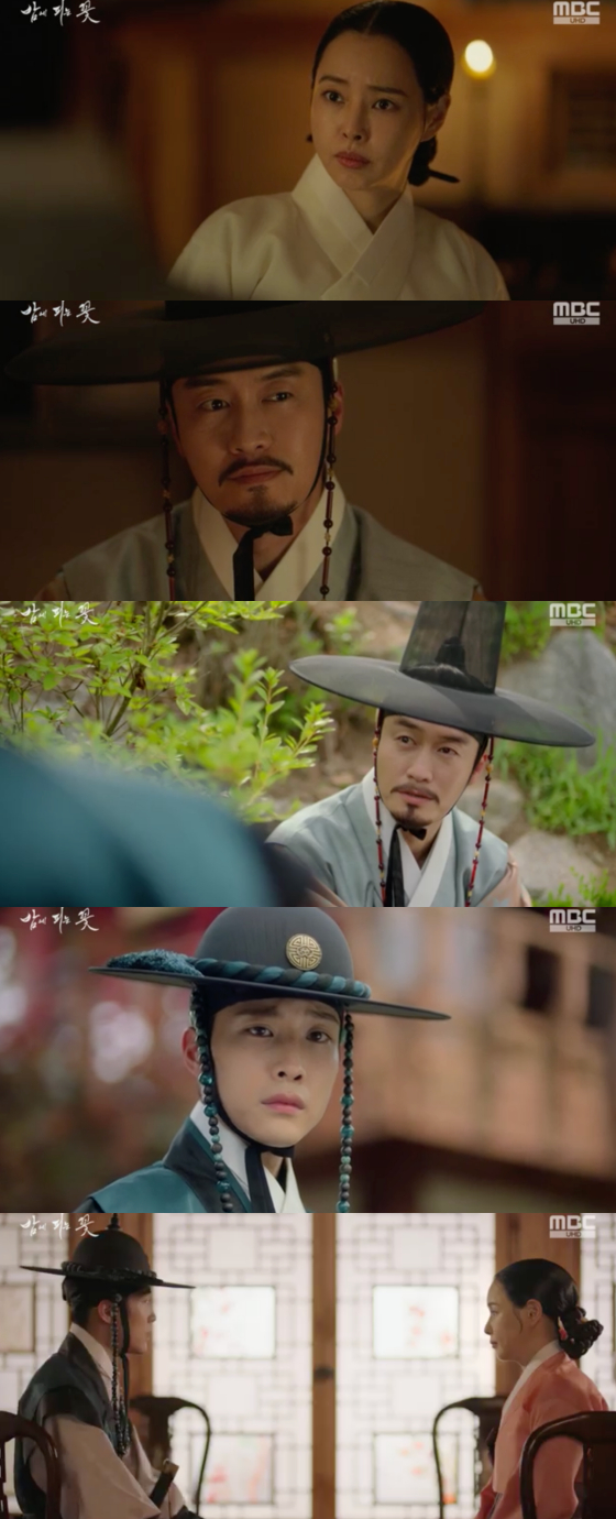 이날 석지성(김상중 분)과 강필직(조재윤 분)은 15년 전 일을 쫓는 박윤학(이기우 분), 박수호(이종원 분)를 제거할 음모를 꾸몄다. 복면을 쓰고 이를 엿듣던 조여화는 들킬 위험에 처하자 급히 돌아와 소복을 입고 위패를 닦는 척 했다.