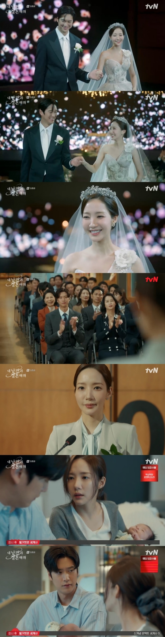 20일 방송된 tvN 월화드라마 '내 남편과 결혼해줘'(이하 '내남결')에서는 강지원(박민영 분)이 유지혁(나인우 분)과 모든 악을 처단하고 결혼과 출산으로 행복을 맞이하는 결말이 그려졌다.