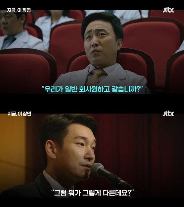 재조명된 장면은 대학병원 사장으로 취임한 구승효(조승우 분)가 지방 의료 활성화를 위해 필수의료과를 지방으로 옮기려고 하자 의사들이 이를 반대하는 장면이었다.