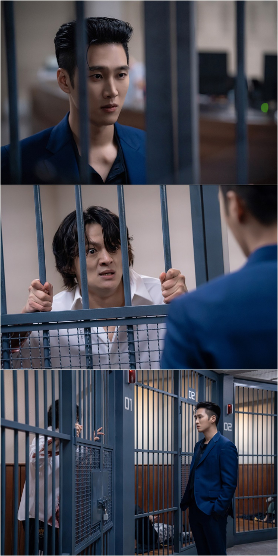 1일 SBS 금토 드라마 '재벌X형사'(극본 김바다, 연출 김재홍, 제작 스튜디오S·빅오션이엔엠·비에이 엔터테인먼트) 측은 9화 방송에 앞서 진이수(안보현 분)가 유치장에서 절친 김영환(최동구 분)와 조우하는 모습이 담긴 현장 스틸을 공개했다.