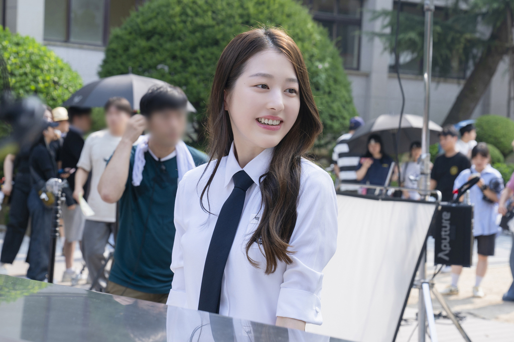 5일 소속사 킹콩 by 스타쉽 측은 티빙 오리지널 시리즈 '피라미드 게임'에서 백하린 역으로 출연 중인 장다아의 촬영 비하인드 스틸을 여러 장 공개했다.