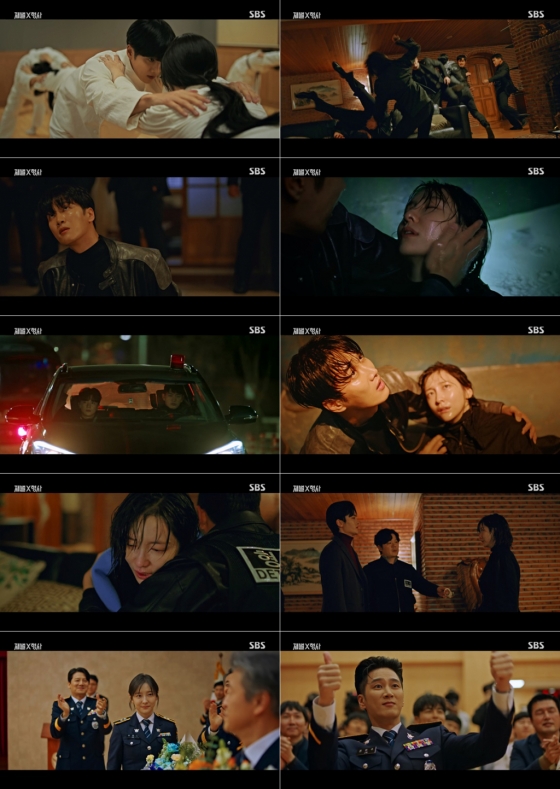 그 순간 이수의 허풍 같은 주장이 사실로 드러나 짜릿한 전율을 선사했다. 드론을 통해 이수의 구조 신호를 확인한 최 이사는 강하서로 달려가 상황을 알렸다. 이에 형사들은 특공대까지 동원해 현장에 출동, 연락을 받은 이기석도 오륜회의 근거지로 향했고 도주하던 신우혁 일당은 언론의 스포트라이트를 받으며 특공대에 의해 보기 좋게 검거됐다. 하지만 형사들은 사택 어느 곳에서도 이수와 강현을 찾을 수 없었고, 점점 차오르는 수위 속에서 강현이 정신을 잃어 위기감이 최고조로 치달았다. 이때 준영은 수조 벽을 두드리는 이수의 구조 신호를 캐치하고 바닥에 수조가 있다는 사실을 알아냈고, 촌각을 다투는 가운데 수조로 이어지는 파이프관을 발견한 경진이 실탄으로 파이프관을 깨뜨리며 차오르는 물을 막았다. 다행히 수조에서 물은 빠졌지만, 강현의 의식을 잃어 안타까움을 자아냈다. 이에 이수는 처절한 심폐소생술로 간신히 강현의 숨을 돌려놓았고, 때마침 준영이 수조 문을 여는 스위치를 찾아내 두 사람을 구조하는 데 성공했다. 이후 안 팀장(김결 분)의 배려로 강현이 비로소 신우혁의 손목에 수갑을 채우고, 독약을 받을 위기에 놓였던 신도들을 구해낸 뒤, 소식을 듣고 달려온 부모님의 품에 무사히 돌아가 통쾌하고도 묵직한 여운을 선사했다.