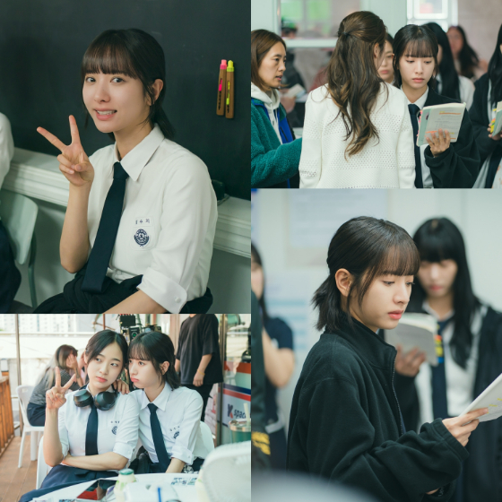 공개된 사진 속 김지연은 미소와 함께 카메라를 향해 브이 포즈를 지어 보이고 있다. 반묶음 헤어 스타일에 교복을 찰떡 소화한 그에게서 풋풋함이 느껴지기도. 뿐만 아니라 김지연은 오세은(송재형 역)과 개구진 표정을 지으며 친구 같은 케미를 발산해 촬영 현장의 편안한 분위기를 전한다.
