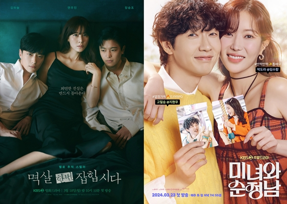 KBS는 3월 KBS 2TV 월화드라마 '멱살 한번 잡힙시다'와 주말드라마 '미녀와 순정남'을 첫 방송한다. KBS 드라마 간판으로 시청률 부진을 씻어내고 시청자들의 사로잡을 수 있을지 관심이 쏠린다. 이와 함께 KBS 1TV 일일드라마 '수지맞은 우리'도 첫 방송을 하며 KBS 드라마 부활에 힘을 실어줄지 이목이 집중되고 있다.