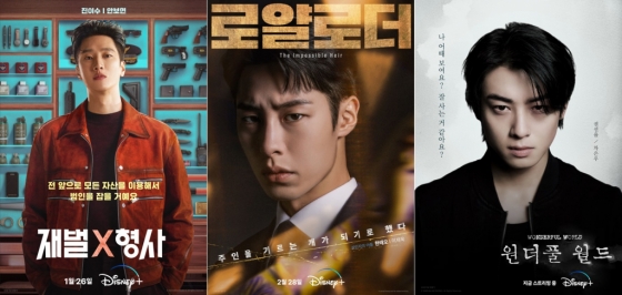 디즈니+가 '원더풀 월드' 차은우, '재벌X형사' 안보현, '로얄로더' 이재욱 등 와일드한 남주들의 매력을 전면에 내세워 안방 1열을 사로잡고 있다.