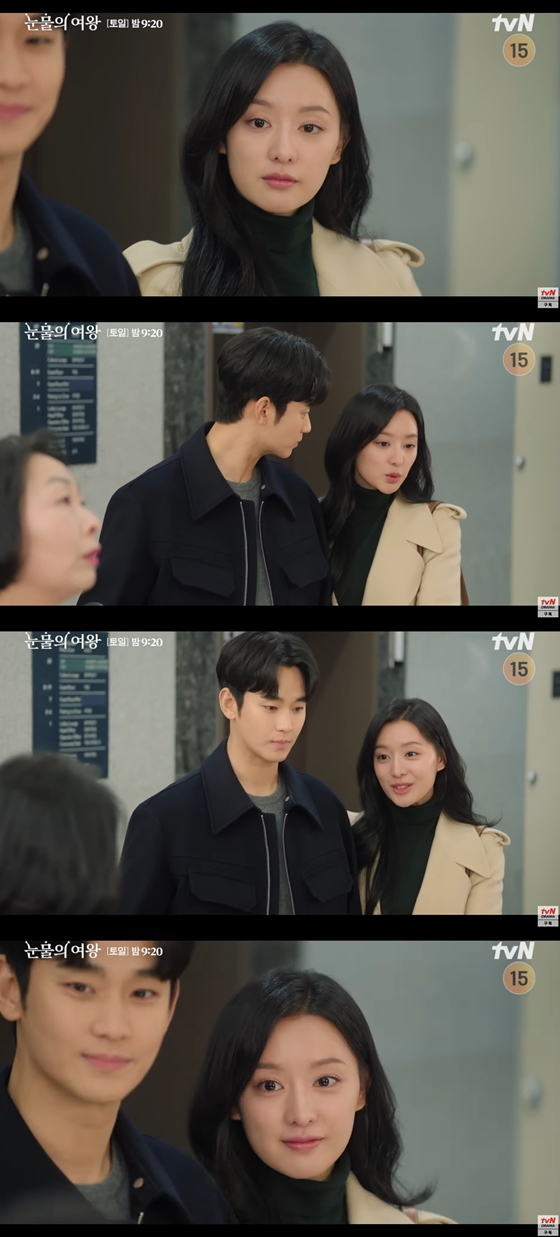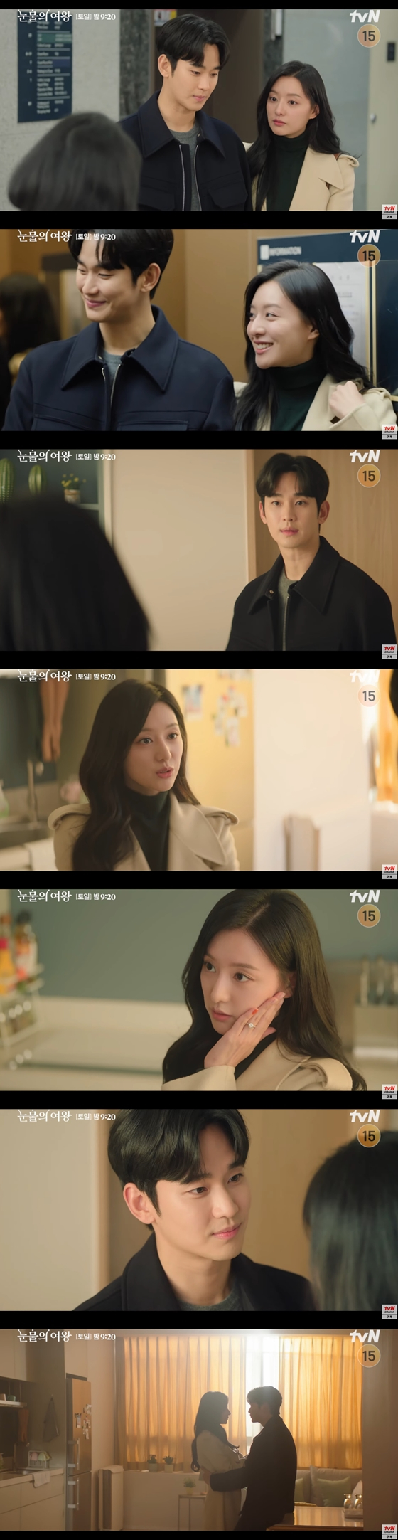 김수현이 "총각 아닌데. 제가 이 사람 아내"라는 김지원의 말에 심쿵했다. 이와 함께 시청자들도 심쿵한 폭발적 반응이 이어지면서 '눈물의 여왕'의 본방송에 거는 기대감이 집중되고 있다. '설렘 폭풍'이 예고됐다.