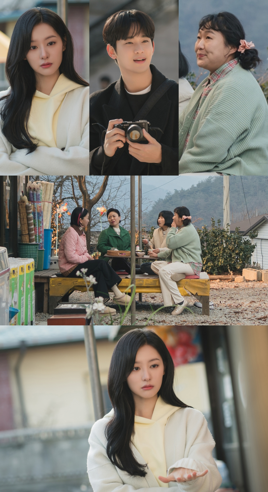 '눈물의 여왕'에서 김지원이 용두리에서 김수현의 첫사랑을 자칭하는 이수지와 신경전을 벌인다.