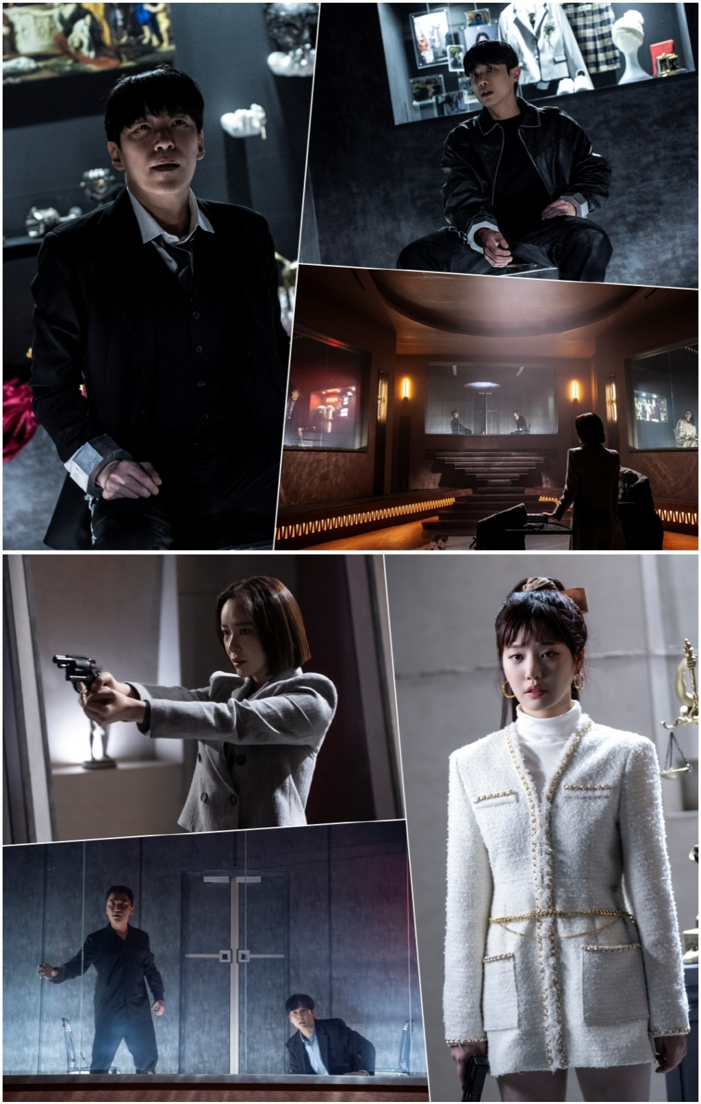 그런 가운데 공개된 사진은 긴장감을 더욱 증폭시킨다. 손발이 묶인 채 서로를 바라보는 매튜 리와 민도혁(이준 분)의 시선이 위태로워 보인다. 중앙 무대에서 '악'의 공동체를 지켜보는 금라희의 뒷모습은 서늘한 아우라를 내뿜고 있다.