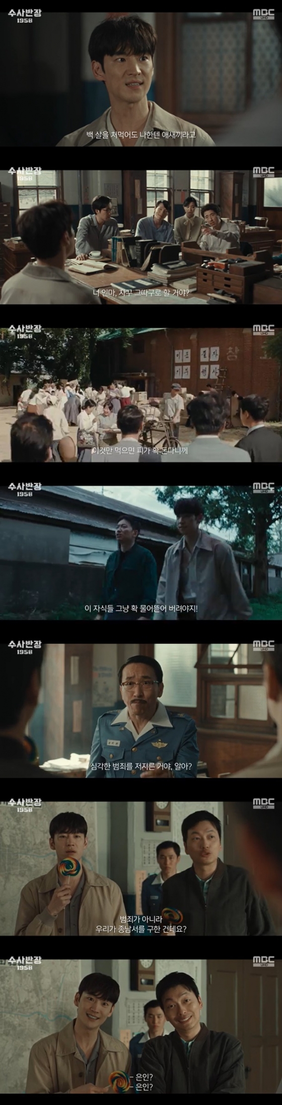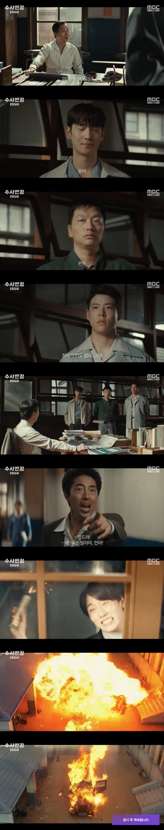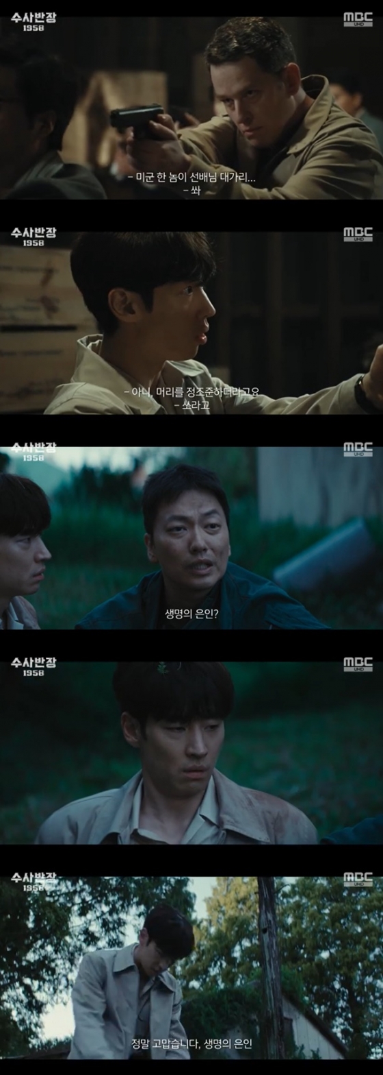 앞서 영한은 상순과 함께 밀수범 이정범(유경훈 분)과 미군들의 밀수 거래 현장에 들이닥쳤고, 총으로 대치하던 중 상순에게 머리를 가격당한 후 쓰러졌다. 이후 상순은 "미군이 선배님 머리를 정조준하더라. 선배님 머리에 구멍 나기 전에 뒤통수를 빡 (쳤다)"라고 설명했다.