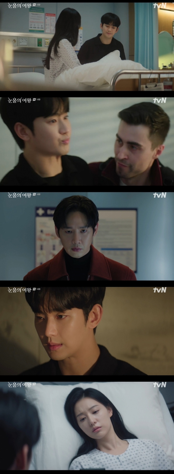 '눈물의 여왕' 배우 김지원이 수술 받는 가운데 김수현이 살해 용의자로 체포됐다.
