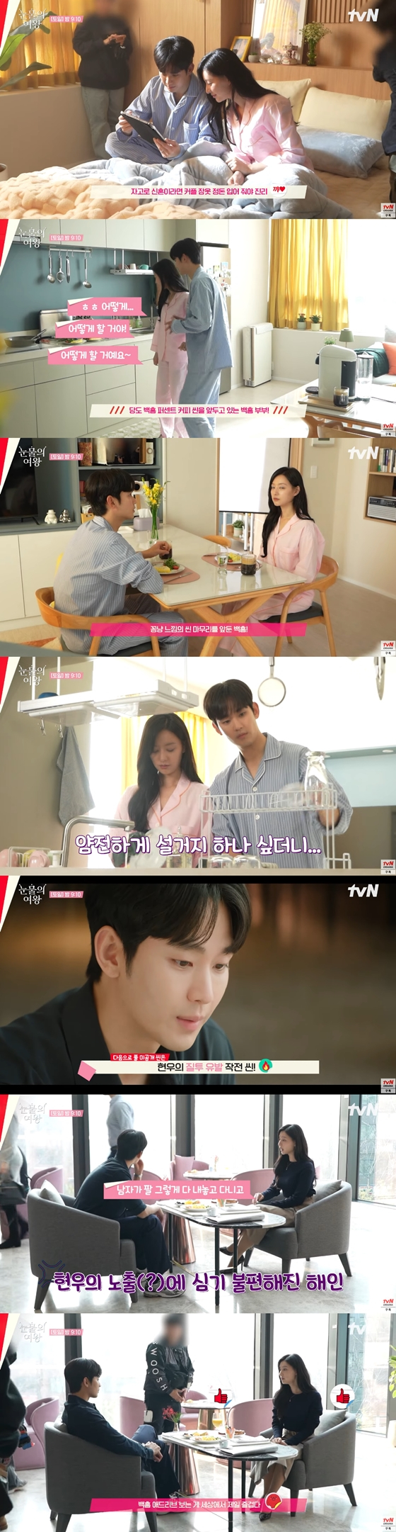 24일 유튜브 채널 'tvN drama'에는 '[메이킹] 백홍 신혼쀼 모먼트 모아모아♥ 달달함 치사량 초과 13-14화 비하인드 (2) (feat. 충치주의) #눈물의여왕 EP.14' 영상이 게재됐다.