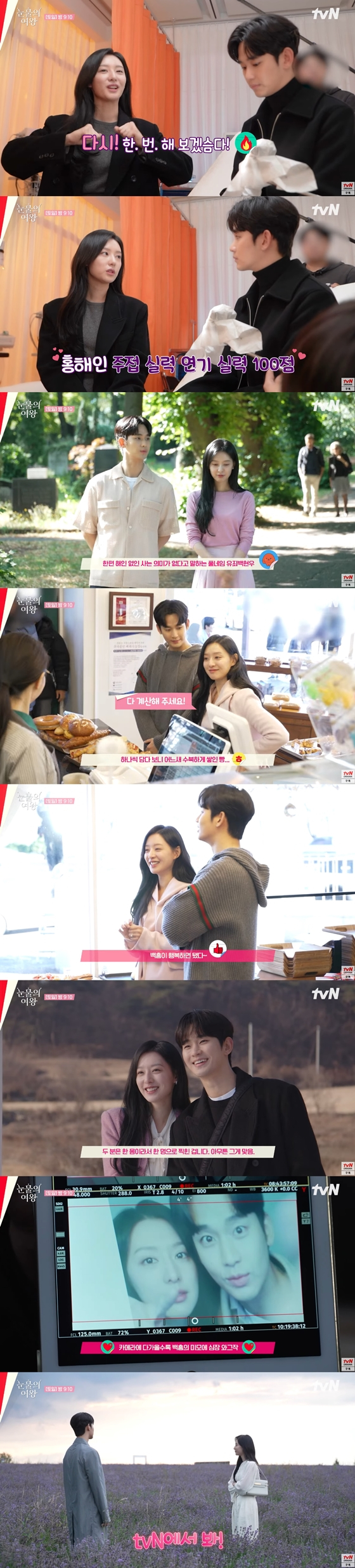 이밖에 김수현, 김지원이 나란히 걸으며 촬영하는 장면에서는 콩닥콩닥 설렘 유발 장면이 나왔다.