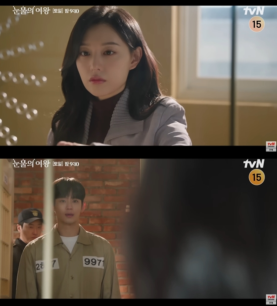 앞서 '눈물의 여왕' 14회에서는 홍해인이 수술실로 들어간 후, 백현우가 누명을 써 체포됐다. 백현우 앞에 윤은성(박성훈 분)이 등장했고, 백현우는 윤은성의 계략임을 알아챘다. 또한 윤은성은 수술 후 깨어난 홍해인 곁에서 백현우와 관련해 거짓말로 모함하면서 홍해인에게 거짓 기억을 심어줬다.