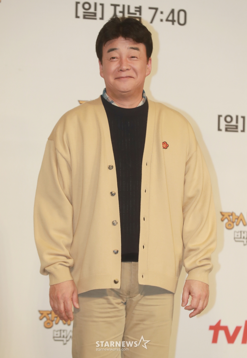 요리연구가 백종원이 29일 오전 서울 마포구 도화동 서울가든호텔에서 열린 tvN 신규 예능 '장사천재 백사장' 제작발표회에 참석해 포즈를 취하고 있다. 대한민국 최고의 외식 경영 전문가 백종원이 한식 불모지에서 직접 창업부터 운영까지 나서는 백종원의 세계 밥장사 도전기를 그린 '장사천재 백사장'은 4월 2일 첫 방송된다. /2023.03.29
