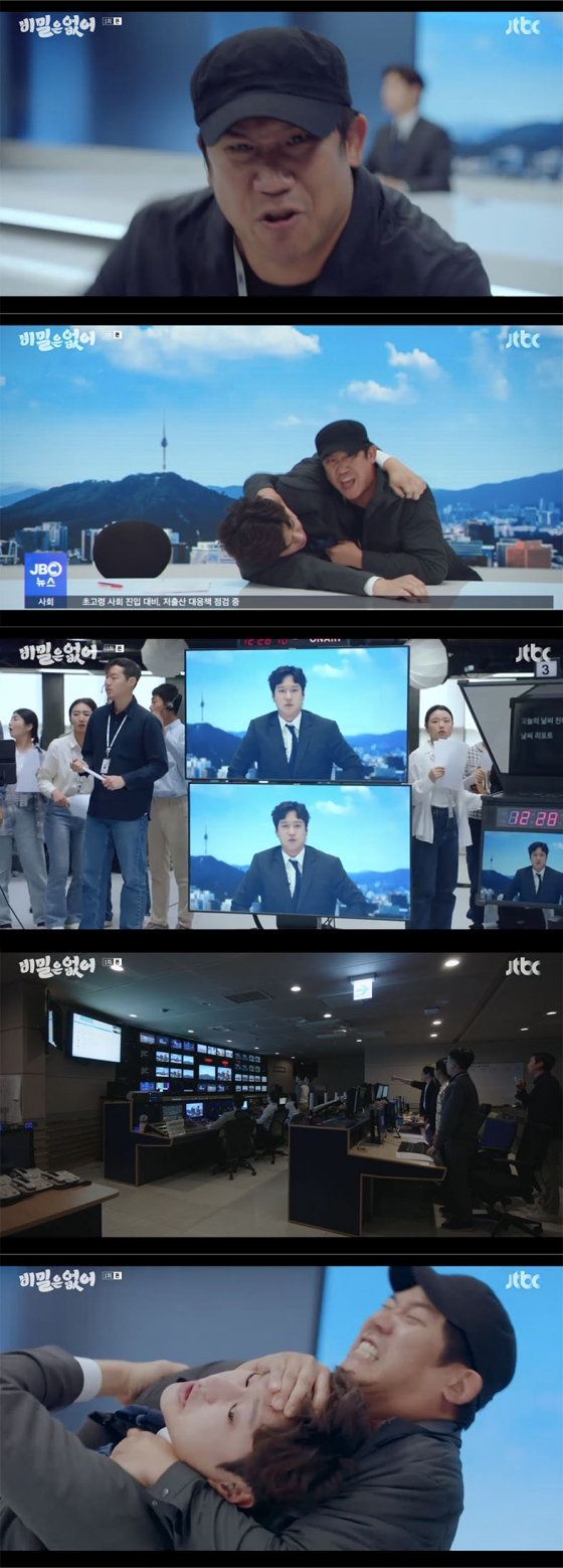 1일 첫 방송된 JTBC 수목 드라마 '비밀은 없어'에서는 송기백(고경표 분)이 생방송 중 괴한에 봉변을 당하는 장면이 그려졌다.