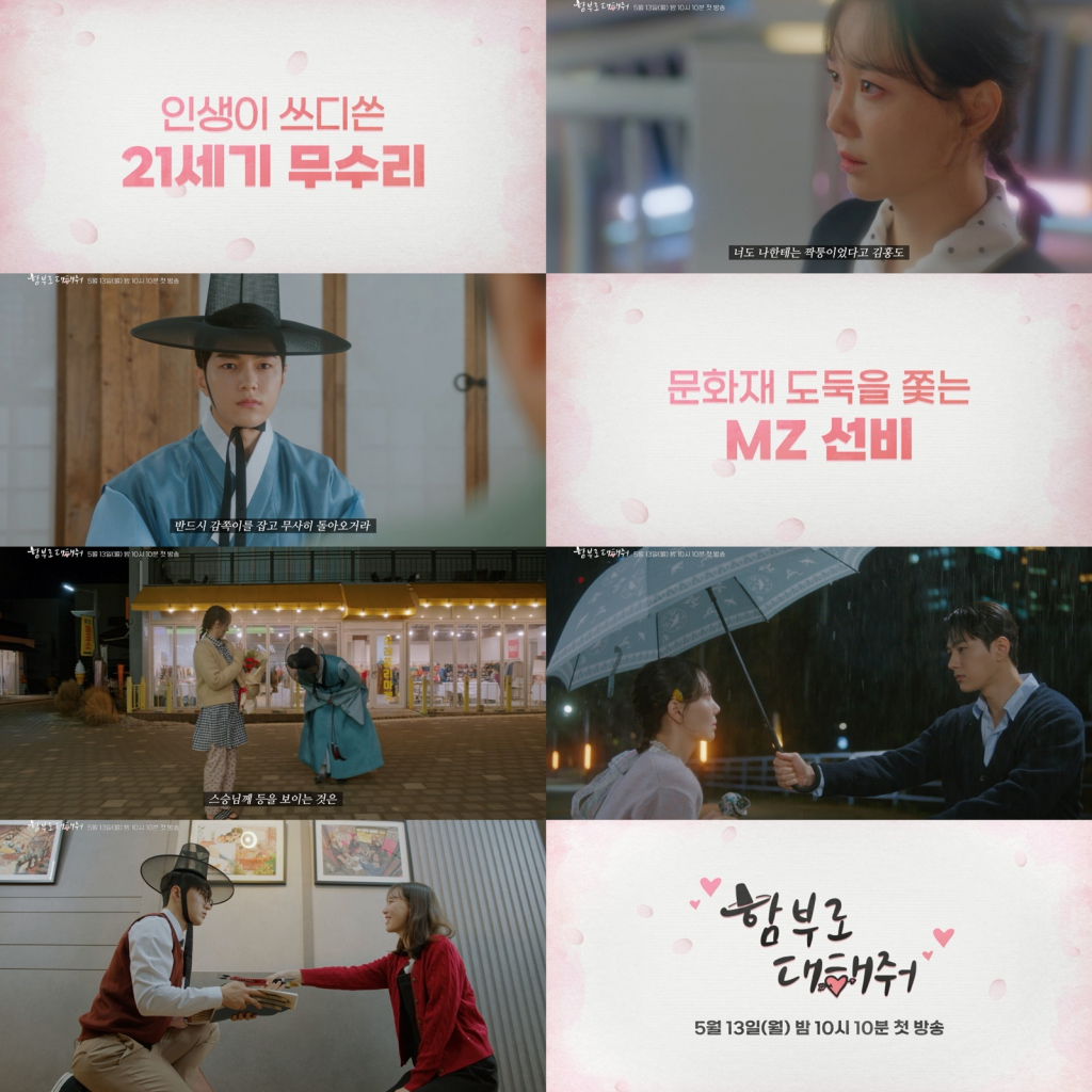 7일 KBS 2TV 새 월화드라마 '함부로 대해줘'(극본 박유미, 연출 장양호) 측은 종합 예고 영상을 공개, MZ 선비 신윤복(김명수 분)과 21세기 무수리 김홍도(이유영 분)의 가슴 떨리는 모멘트들로 보는 이들의 마음을 두드리고 있다.