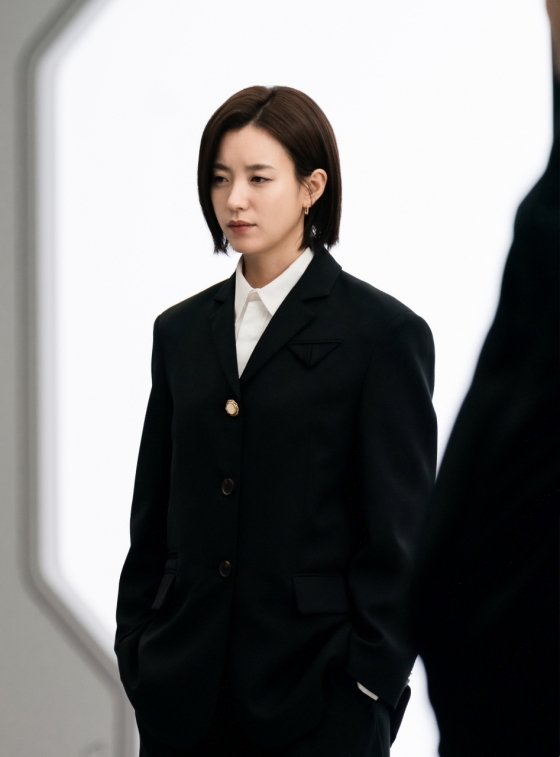 ▶'쎄시봉', '무빙' 등 여러 번 호흡을 맞춰온 채경화 의상실장님과 하늘분장팀까지 예전부터 함께해온 오랜 스태프들과 함께해서 그런지 더욱 시너지 효과가 난 것 같습니다. 개인적으로는 기업인으로서의 윤자유의 스타일이 굉장히 마음에 들었습니다. 외형적으로 변화를 주기 위해 긴 머리를 싹둑 자르자는 의견을 냈고 그 의견이 받아들여져서 전체적으로 대본에 있는 윤자유의 캐릭터가 지금까지 제가 보여드렸던 외형적 모습과는 또 다른 모습을 보여드릴 수 있었던 것 같아 만족스러웠습니다. 또 윤자유는 감정을 드러내지 않는 인물이어서 목소리 톤을 바꾸기도 했는데, 전체적으로 버석한 나뭇잎 같은 캐릭터를 만들기 위해 노력했습니다.