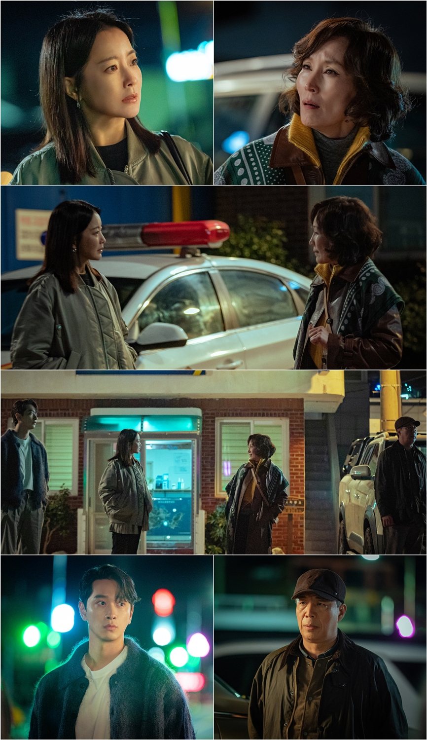 김희선과 이혜영, 황찬성과 안길강이 2 대 2로 극명하게 편을 갈라 나눈 가운데 며느리와 시어머니 간 전혀 다른 의견을 내세운 '180도 다른 온도차 감정선' 현장이 포착됐다. 극 중 노영원과 홍사강, 노영민(황찬성)과 박강성(안길강)이 최재진에 대한 조사를 마치고 파출소에서 나오는 장면. 노영원은 시신을 찾지 못한 최재진의 사망을 언급하며 냉정함을 드리우는 반면, 홍사강은 아들이 살아있다는 실낱같은 희망을 내비치며 노영원과 대비를 이룬다. 결연한 노영원과 분노가 끓는 홍사강 옆으로 당혹스러워하는 노영민과 난감한 박강성이 묘한 분위기를 드리운다.
