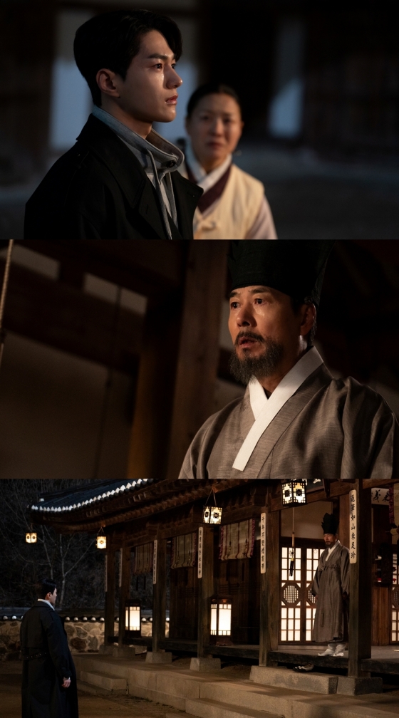 공개된 사진 속 신윤복은 늦은 밤 조부 신수근(선우재덕 분)과 거리를 둔 채 심상치 않은 기운을 발산하고 있다. 조부를 바라보는 신윤복의 표정은 분노로 딱딱하게 굳었지만 눈은 잔뜩 젖어있어 시선을 끈다. 반면 신수근은 기별도 없이 온 손자의 행동에 놀라움을 감추지 못하고 있어 두 사람 사이에 예사롭지 않은 일이 일어났음을 짐작할 수 있다.