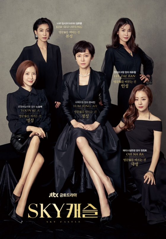 'SKY 캐슬'은 대한민국 상위 0.1%가 모여 사는 SKY 캐슬 안에서 남편은 왕으로, 제 자식은 천하제일 왕자와 공주로 키우고 싶은 명문가 출신 사모님들의 처절한 욕망을 샅샅이 들여다보는 드라마로, 국내 방영 당시 비지상파 시청률 23.8%를 기록하며 전국적으로 'SKY 캐슬 신드롬'을 이끌어냈다.