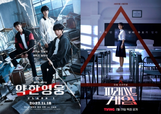 일례로 '약한영웅 Class 1''(2022년 作)이 있다. '약한영웅 Class 1'은 원작 웹툰을 기반으로 둔 드라마로, 겉보기에는 연약해 보이는 상위 1% 모범생 연시은(박지훈 분)이 타고난 두뇌와 분석력으로 학교 안팎의 폭력에 대항해가는 약한 소년의 성장기를 그린다. 청소년 관람 불가인 19금 판정을 받은 이 작품은 박지훈, 최현욱, 홍경의 뛰어난 연기력, 흡입력 있는 전개, 입체적인 캐릭터 등으로 박수받았다.