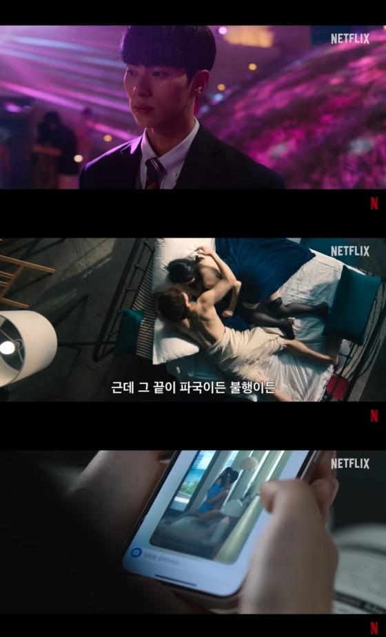 이 가운데 넷플릭스 드라마 '하이라키'가 지난 7일 공개됐다. 명백한 학생 서열화 내용을 담고 있는 '하이라키'는 예고편을 통해 클럽, 베드신 등을 그려냈고, 시작부터 '피라미드 게임'과 비슷한 설정을 보였다.