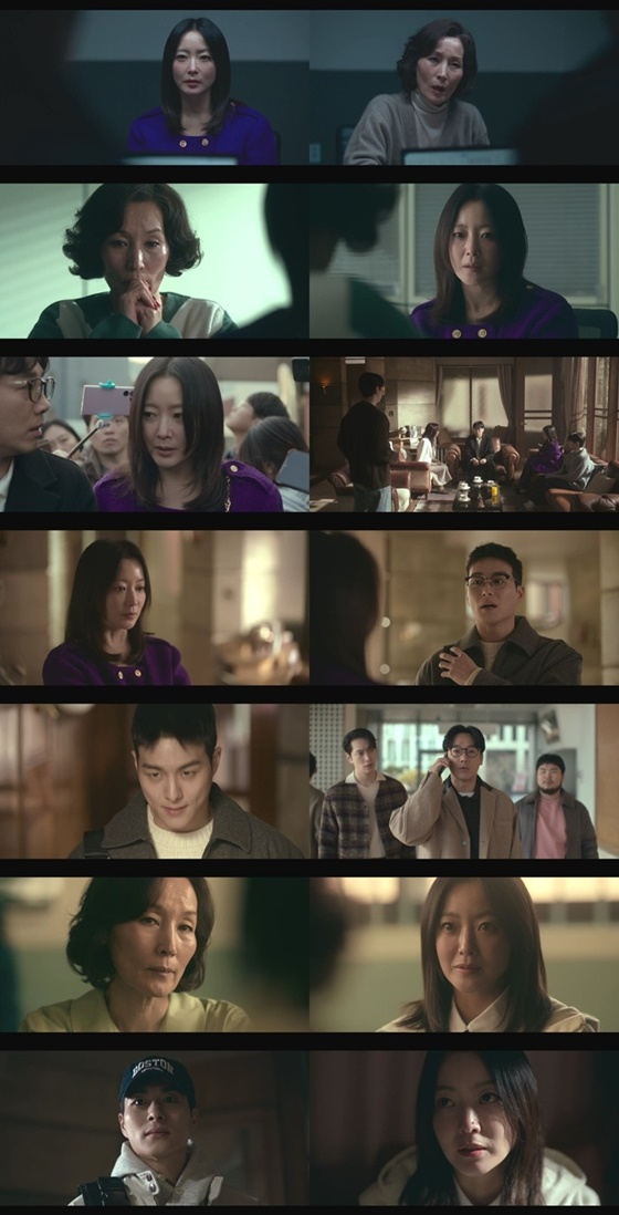 집에 돌아온 노영원은 자신의 잘못이라며 무릎까지 꿇는 최재진을 달랜 후, 노영민(황찬성 분)과 최도현(재찬 분), 최여사(김선경 분)까지 모인 자리에서 "이럴 때일수록 가족끼리 더 믿어 달라"며 호소했다. 이어 경찰들이 몰려와 가택 수사와 참고인 조사를 진행했고, 이때 과외를 위해 방문한 문태오(정건주 분)에게 노영원은 당분간 과외를 쉬겠다고 알렸다. 문태오는 최도현의 루틴을 위해 과외를 해야 한다고 했지만 노영원과 최재진은 싸늘하게 거절했고, 이에 문태오는 철수하는 경찰들을 기다리다 홍사강이 오지은(신소율 분)을 울렸다는 정보를 흘렸다. 그리고 오지은은 참고인 조사에서 홍사강에 대해 "살인도 가능한 무서운 분이죠"라고 불리한 진술을 쏟아냈다.