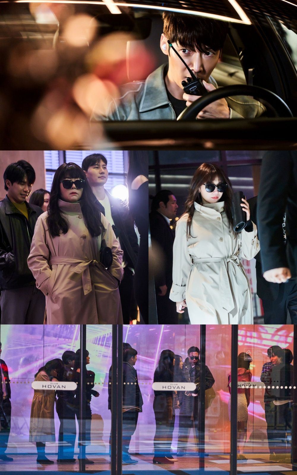 이와 함께 공개된 사진 속에는 시크한 스타일로 클럽에 입장한 임순과 이미진의 모습이 눈에 띈다. 모범 인턴의 복장은 벗어던지고 까만 선글라스에 비밀을 감춘 트렌치코트까지 이전까지 본 적 없던 임순의 변신이 감탄을 부른다. 이어 임순과 똑같은 의상의 이미진 클럽에서 당당한 매력을 뽐내고 있어 또 한 번 놀라움을 더한다. 더불어 바깥에서 업무를 지시 중인 계지웅의 예리한 눈빛이 지금이 중요한 업무 수행 중이라는 것을 체감하게 만든다.