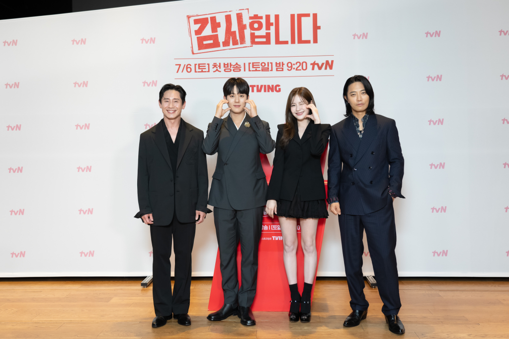 '감사합니다'의 관전 포인트를 물었다. 조아람은 "믿고 보는 선배님들의 연기라고 생각한다. 오피스 활극인만큼 횡령범을 잡을 때 시원한 카타르시스가 있다"고, 진구는 "후배들의 싱그러움이 있다. 저와 백현진 선배님의 부사장실 케미도 봐 달라"고 했다. 이정하는 "감독님의 엄청난 연출력을 말씀드리고 싶다. 선배님들의 믿고 보는 연기력과 후배들의 싱그러움을 감독님이 잘 연출해 주셨다. 너무 다른 두 사람이 함께 사건사고를 보면서 닮아가고 성장하는 포인트도 봐 달라"고, 신하균은 "횡령범을 잡을 때 어떻게 공조하고 해결해 나가는지, 관계가 어떻게 되는지 봐 달라"고 당부했다. 권 감독은 "더운 여름에 시원한 사이다 같다"라고 덧붙였다.