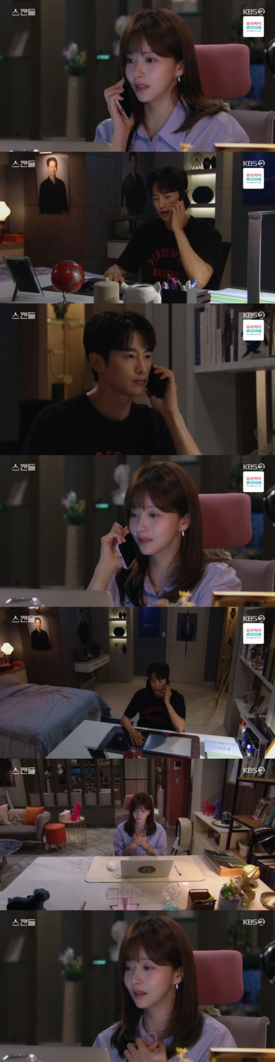 9일 오후 방송된 KBS 2TV 일일드라마 '스캔들'에서는 기억을 잃은 서진호(정우진, 최웅 분)와 전화 통화하는 백설아(한보름 분)의 모습이 그려졌다.