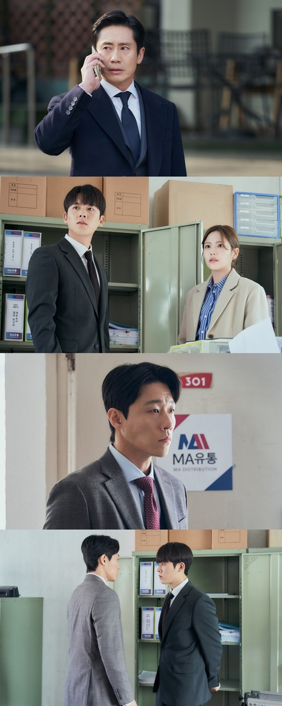 공개된 사진 속에서는 신차일의 지시를 따라 증거가 숨겨진 듯한 사무실에 잠입한 구한수와 윤서진의 미션 수행기를 확인할 수 있다. 빼곡하게 들어찬 문서들 사이에서 횡령을 입증할 서류를 찾던 구한수와 윤서진, 그리고 두 사람 앞에 나타난 강명철의 서늘한 시선이 위기감을 불러일으킨다.