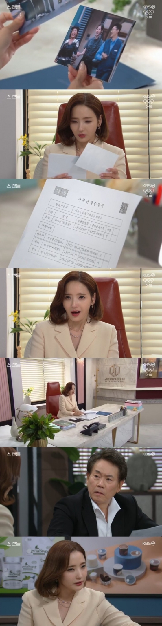 16일 오후 방송된 KBS 2TV 일일드라마 '스캔들'에서는 백설아(한보름 분)의 정체를 알게되는 문정인(한채영 분)의 모습이 그려졌다.