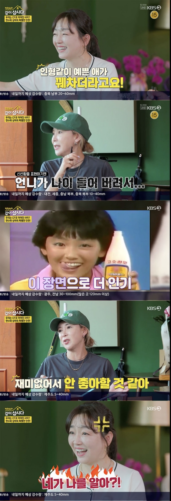 이연수는 당시 마요네즈 CF 모델을 이상아에게 넘겨주던 당시를 회상하며 "제가 계속할 줄 알았는데 인형같이 예쁜 애가 꿰차더라"라고 너스레를 떨었다. 이에 이상아는 "언니가 신선함을 표현하기에 나이를 들어버려서 나한테 기회가 왔다"라고 솔직히 털어놔 보는 이들의 웃음을 자아냈다.