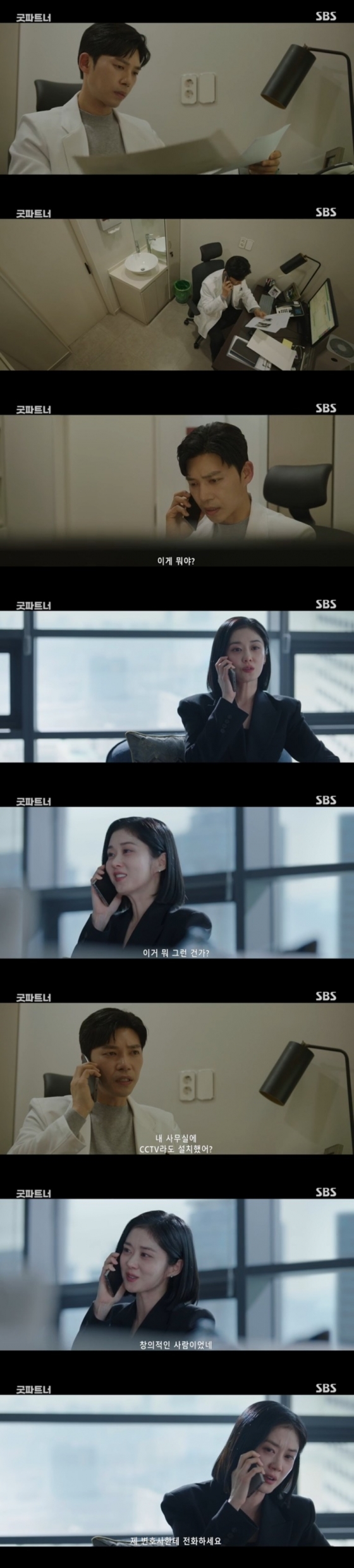 20일 오후 방송된 SBS 금토드라마 '굿파트너'에서는 이혼 소장을 받은 김지상(지승현 분)이 차은경(장나라 분)에게 전화를 걸었다. 차은경은 눈물을 쏟으며 감정을 억눌렀다.
