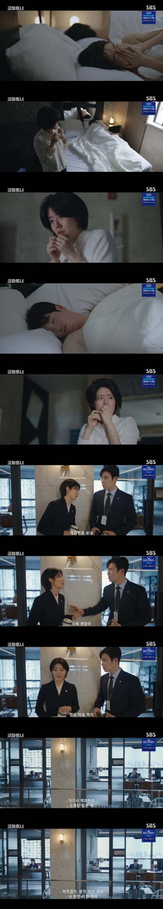 20일 오후 방송된 SBS 금토드라마 '굿파트너'에서는 전은호(표지훈 분)와 첫날밤을 보내는 한유리(남지현 분)의 모습이 그려졌다.