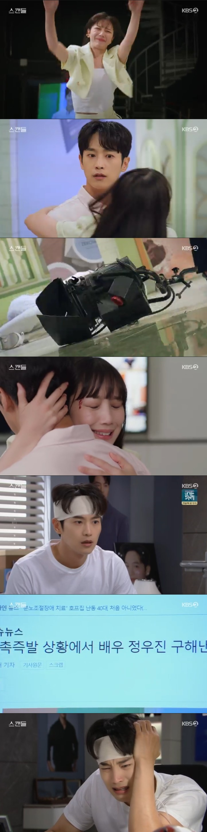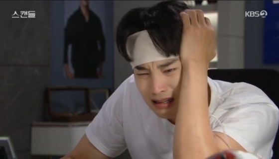 23일 오후 방송된 KBS 2TV 일일드라마 '스캔들'에서는 생방송 중 사고를 당한 후 과거의 기억이 되돌아오는 정우진(최웅 분)의 모습이 그려졌다.