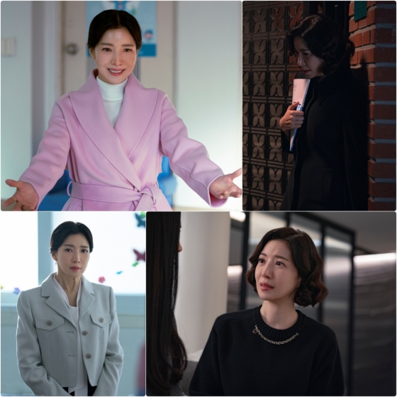 극 중 하은주가 딸의 살인을 어떻게 받아들일지 궁금해지는 가운데 방송 전 제작진이 공개한 스틸 속 은주의 반전미 넘치는 모습이 눈길을 끈다. 그는 온화한 미소를 짓고, 다정한 눈빛으로 따뜻한 엄마의 모습을 보여주다가도 한밤중 문제집을 들고 숨어 있는 장면은 어딘가 모르게 서늘한 기운이 감돈다.