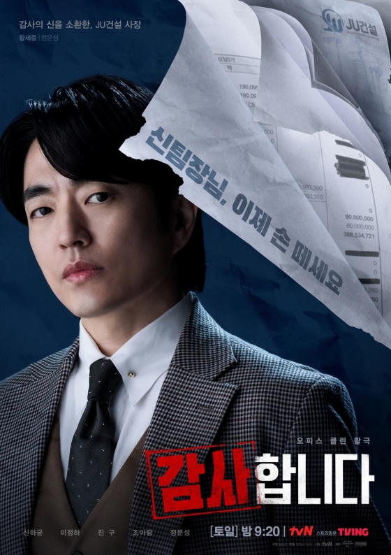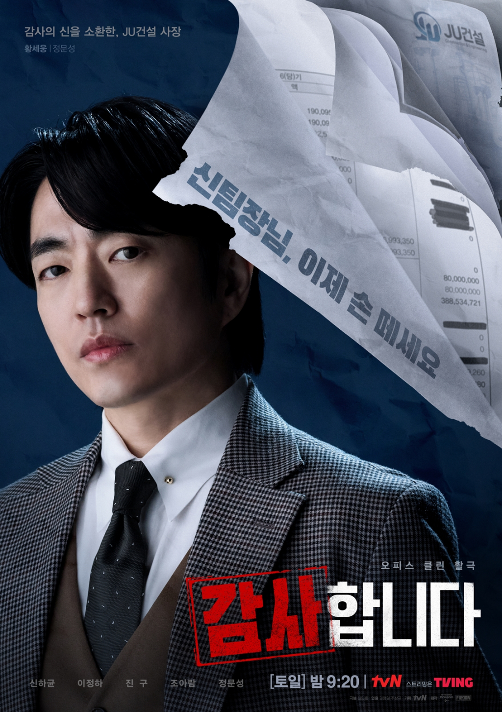 황세웅의 수상쩍은 행보가 계속되는 가운데 공개된 포스터 속에는 감사의 신을 소환한 JU건설 사장 황세웅의 색다른 얼굴이 담겨 있다. 그의 머리 위 흩날리는 서류들은 구겨진 채 이곳저곳 찢어져 의뭉스러운 분위기를 자아낸다. 무엇보다 서류 안에 검게 칠해진 숫자들에서는 비리 발생의 조짐이 읽혀 황세웅의 실체가 주목된다.