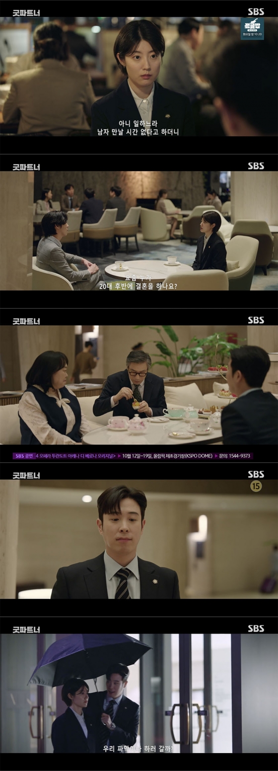 17일 밤 방송된 SBS 금토드라마 '굿파트너' 7회에서는 한유리(남지현 분)가 모친의 성화에 못 이겨 소개팅에 나간 장면이 그려졌다.