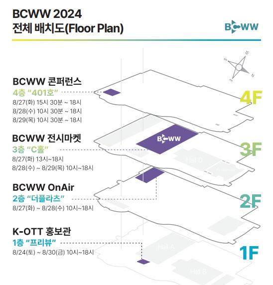 문화체육관광부(장관 유인촌)가 주최하고 한국콘텐츠진흥원(원장 조현래, 이하 콘진원)과 코엑스가 공동 주관하는 '2024 국제방송영상마켓(BroadCast WorldWide, 이하 BCWW)'이 8월 27일부터 29일까지 3일간 서울 삼성동 코엑스에서 개최된다.