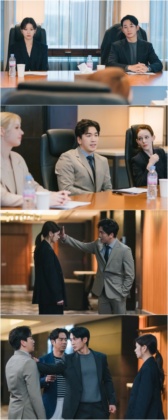 이날 공개된 사진 속 최승효와 배석류의 분위기가 평소와는 사뭇 다르다. 최승효가 공동대표로 있는 건축사 사무소 아틀리에 인의 비즈니스 현장. 배석류가 이 자리에 함께하게 된 것은 그가 근무하던 미국 그레이프와의 미팅을 위해서다. 앞선 예고편에서 아틀리에 인 공동대표 윤명우(전석호 분)가 "그레이프에서 연락이 왔어"라며 파트너사 기회에 기뻐하는 찰나, 최승효와 배석류는 복잡미묘한 눈빛을 주고받았다. 결국 함께 프로젝트를 준비하게 된 가운데, 여느 때처럼 당당하고 담담한 최승효와 어색함과 불편함이 뒤섞인 배석류가 이목을 집중시킨다.