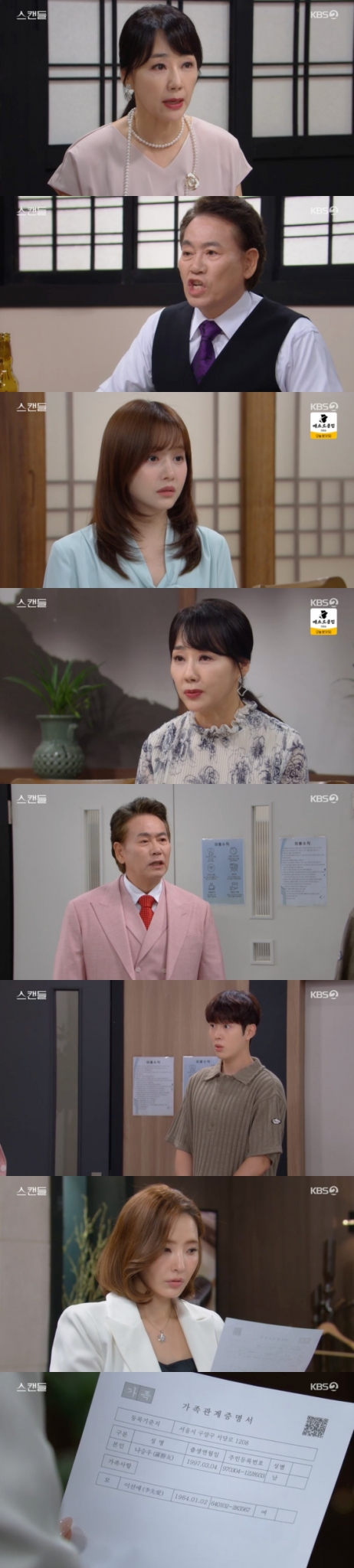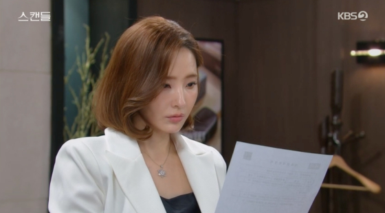 26일 방송된 KBS 2TV 일일드라마 '스캔들'에서는 문정인(한채영 분)이 남편 민태창(이병준 분)에 대한 의심을 키우는 모습이 그려졌다.