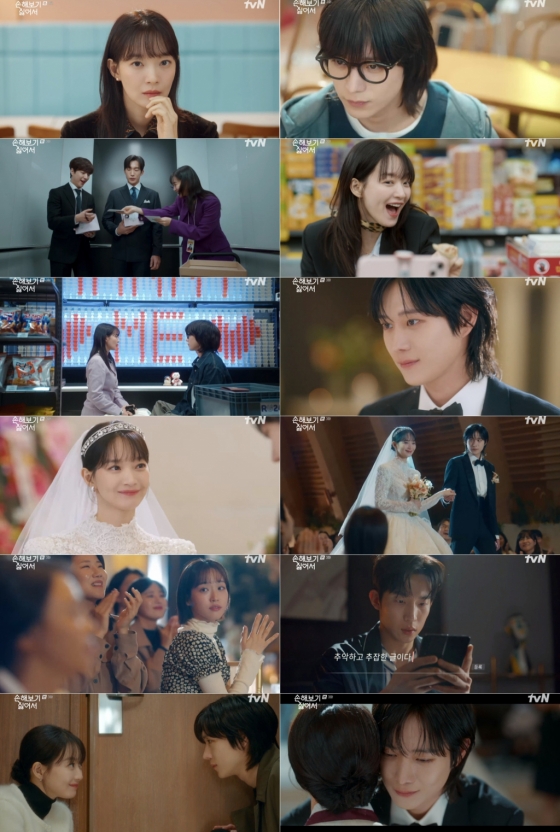 한편 지욱은 의문의 인물에게 "나 결혼해. 가족이 생긴다고"라는 의미심장한 말을 내뱉어 이목을 집중시켰다. 이후 결혼식이 필요해진 지욱은 해영의 최애 간식 팡팡 젤리를 활용한 '손해영' 맞춤형 프러포즈를 깜짝 준비해 그녀를 감동케 했다. 해영은 "진짜 후회 안 하겠어요? 멈출 수 있는 마지막 기회에요"라는 지욱의 말에도 가짜 결혼'식'을 올려 사내 공모 1등을 하겠다는 마음을 굳게 다잡았다.