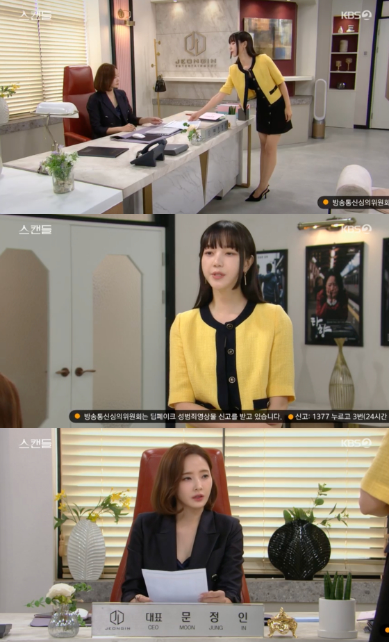 3일 방송된 KBS 2TV 일일드라마 '스캔들'에서는 스폰서 의심 리스트를 접하는 문정인(한채영 분)과 민주련(김규선 분)의 모습이 그려졌다.